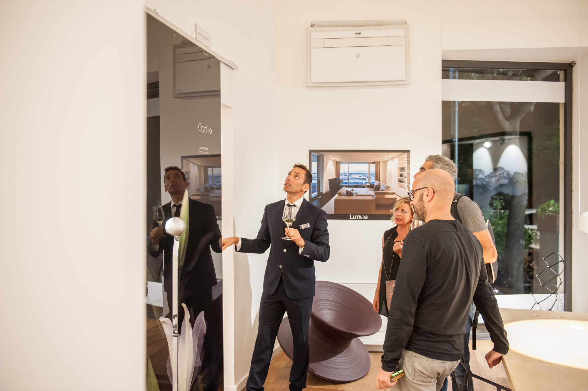 Lo spazio espositivo, invece, mette in mostra tutta la bellezza estetica e tecnologia delle lampade dei vari brand, come per esempio Occhio, Flos, Modular ecc…